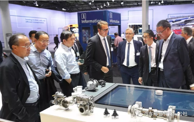 钱恒荣带领团队参观了霍尼韦尔增压技术展台。霍尼韦尔交通系统客户管理副总裁Deiro Daniel、市场与商务战略副总裁Barthelet Pierre、中国区高级客户总监钱昀照等与他作了深入交流。