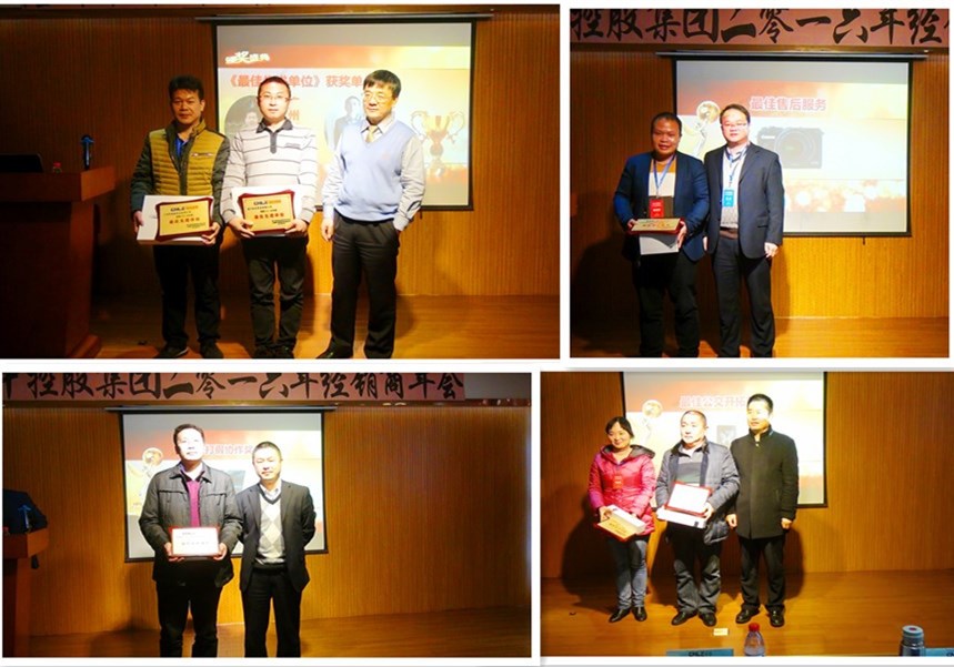 会议由彭翠霞、李荣涛主持。会议首先由隆中公司董事长陈绪丰致欢迎词,并对15年国内商用车市场销售情况及16年商用车市场情况进行了简要的分析和介绍。董事长陈绪丰表示,隆中的发展离不开各位经销商伙伴的共同努力,希望再2016年新的一年里广大经销商能够积极响应隆中的号召,推进隆中售后市场的开拓发展。上海隆中国际贸易有限公司总经理谢尚强对2015年售后市场销售情况进行了总结。销售中心总经理杨利营首先向经销商伙伴们传递了隆中自动调整臂获得江淮重卡的指定使用的捷报,并就2016年新的终端市场分布和市场服务分布进行了介绍,同时也发布了新的经销商政策,希望和经销商联手严厉打击市场上出现的隆中产品的假货。会议上午11点进行了颁奖仪式,共评出最佳先进单位、最佳公交开拓、最佳售后服务、最佳打假协作和2105年潜力经销商5项大奖。