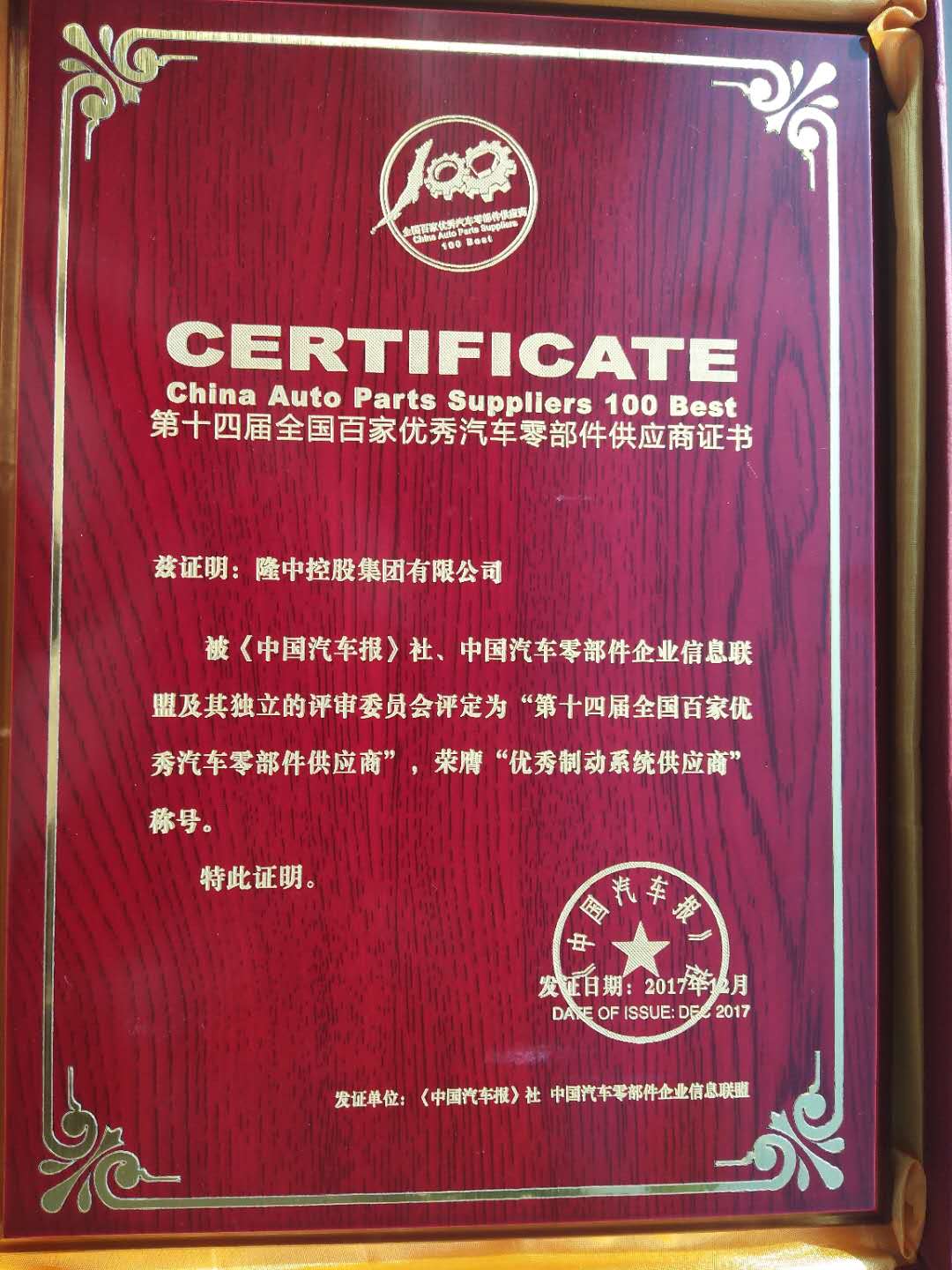 在激动人心的颁奖环节,隆中控股集团再次荣获“优秀制动系统供应商”称号,这不仅代表了隆中控股在中国制动系统领域做出的贡献,也激励着隆中更加坚定的为制动行业努力钻研。隆中控股集团29年间,在商用车零配件行业已取得骄人的业绩,其主要产品已覆盖国内所有的客车客户和卡车客户,隆中不仅获得了客户的认可,也获得了业界专家的认可,相信隆中未来的发展会越来越好!