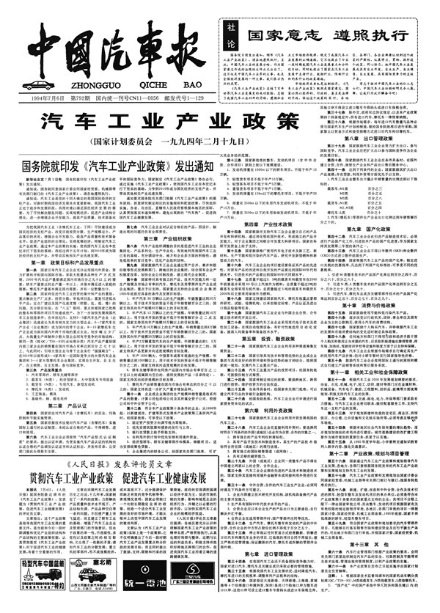 1994年3月,国务院批准《汽车工业产业政策》,我国汽车业有了第一部行业发展政策文件。
