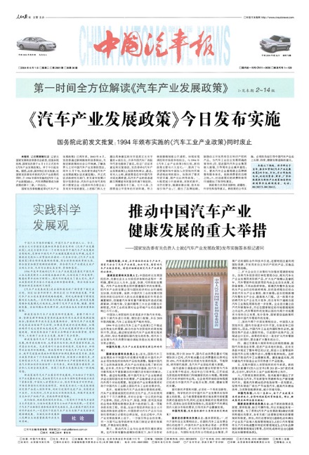 2004年6月,《汽车产业发展政策》发布,推动我国汽车业健康发展。